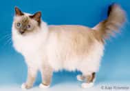 El templo de Lao-Tsun se erigió en Asia para rendir culto a la diosa Tsun-Kyan-Kse. Era una diosa dorada con ojos azul zafiro. Mun-Ha, uno de los sacerdotes del templo, se arrodillaba ante la estatua de la diosa con el gato blanco del tempo, llamado Sinh, sentado a su lado. Una noche, unos ladrones entraron al templo mientras Mun-Ha rezaba y lo mataron. Con Mun-Ha al borde de la muerte, Sinh posó sus patas sobre Mun-Ha y miró a la diosa. Su cuerpo cambió inmediatamente de blanco a dorado, y sus ojos se volvieron azules, igual que los de la diosa. Sus patas pasaron a ser marrones, pero, en la base, donde habían tocado a su maestro, siguieron blancas como símbolo de pureza. Los demás gatos del templo también se transformaron de la misma manera. Sinh permaneció junto a su señor los siete días siguientes, hasta que el animal también murió, y se llevó el espíritu de Mun-Ha al paraíso. Aún se cree que, cuando uno de los gatos sagrados del templo muere, el espíritu de un sacerdote acompaña al del gato hasta el paraíso.
