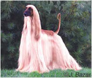 La primera peregrinación de estos perros para salir de Oriente Medio llegó de la mano de soldados británicos que los llevaron consigo a Inglaterra en el siglo XIX. El American Kennel Club (AKC) reconoció al afgano en 1926. Se hizo famoso por su glamour y alcanzó su momento de máximo éxito en la década de 1970. En la actualidad los afganos se utilizan como mascotas domésticas y perros de exposición en lugar de cazadores, aunque algunos propietarios aventureros los llevan a las persecuciones de la liebre con señuelo para simular una cacería. Sus mechones sueltos y actitud noble convierten a los afganos en ganadores eternos en las exposiciones.