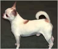 Pesan entre 1 y 3 kg y tienen una altura de tan solo 15 cm. Los chihuahuas tienen el cráneo abombado y algunos tienen una zona blanda en la parte superior de la cabeza en la que no se han unido los huesos, hendidura que se conoce como mollera. Tienen unas grandes orejas erguidas y hocico corto y afilado. Sus ojos son redondos y grandes. Estos perros son ligeramente más largos que altos y tienen una cola bastante larga que llevan levantada sobre la espalda.